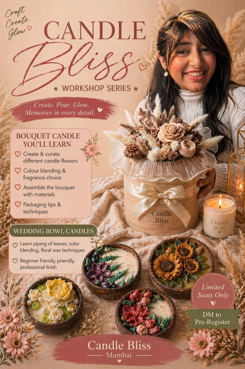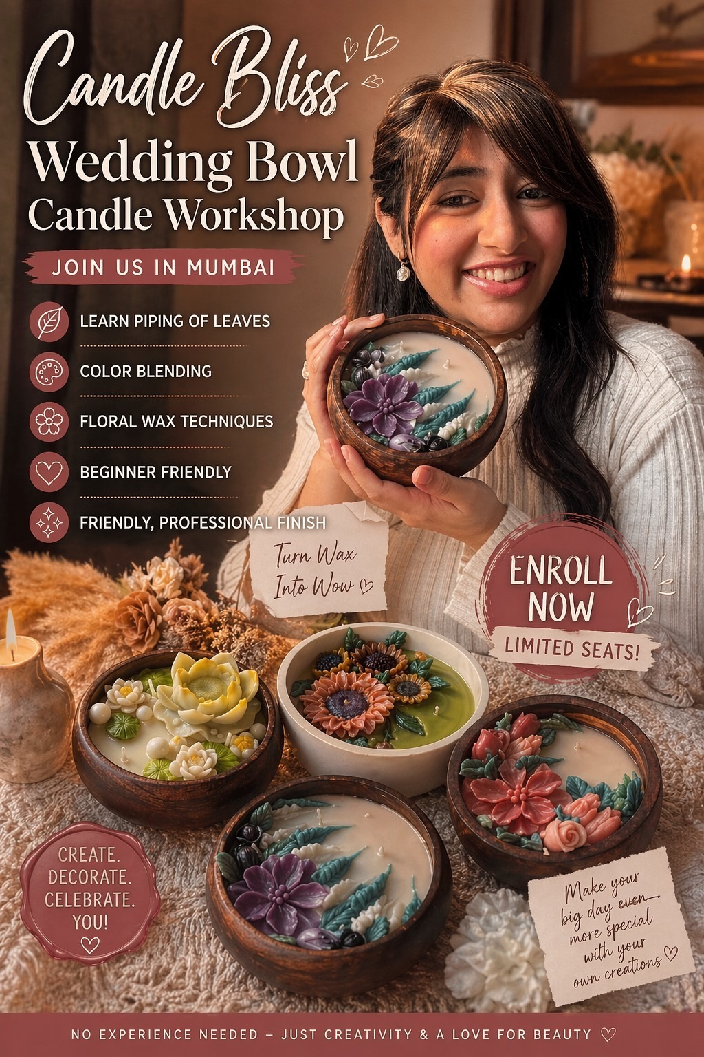 Mumbai Candle Making masterclass – 16 may (floral bouquet and wedding bowl )