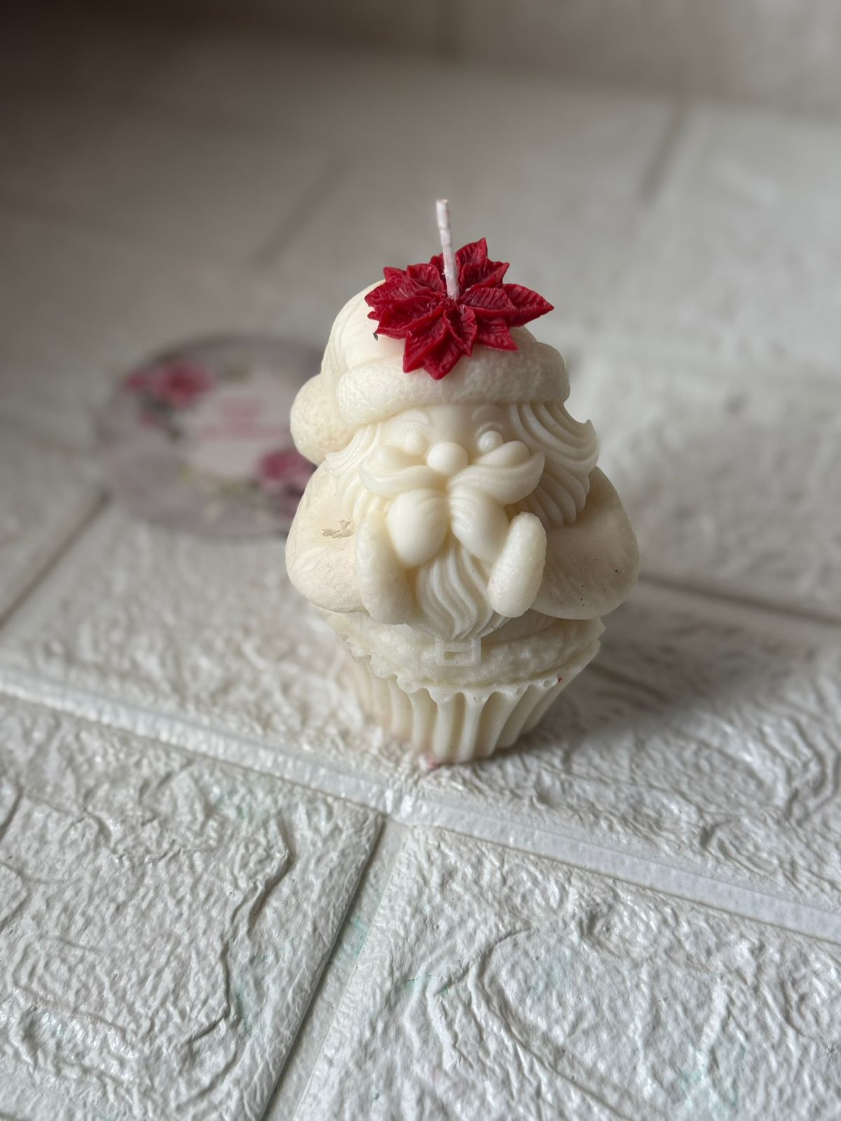 Santa in a cupcake candle